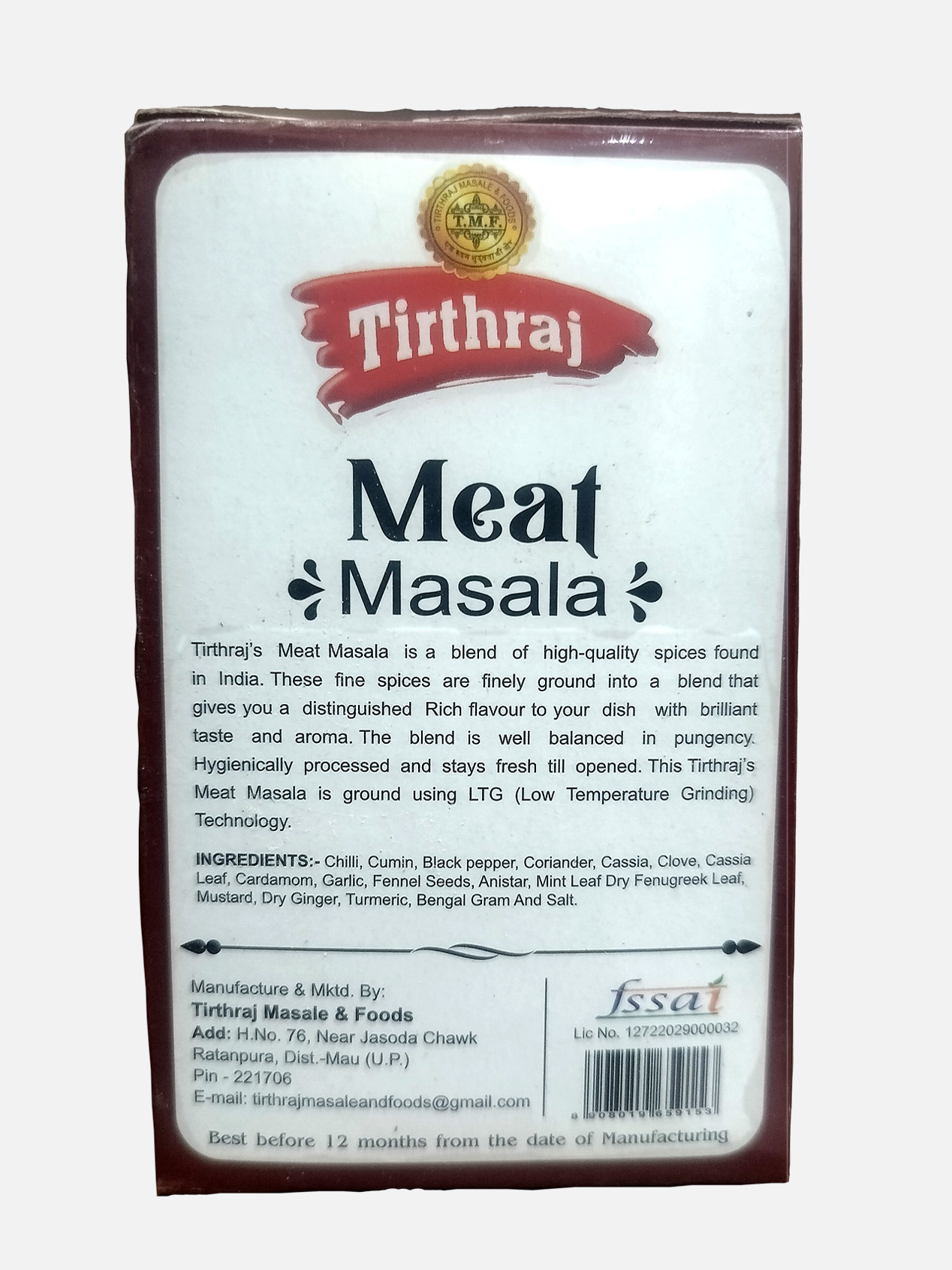 Tirthraj Meat Masala is a premium spice blend made from carefully selected spices to enhance the taste, aroma, and colour of meat dishes. Ideal for chicken, mutton, and rich gravies, it delivers authentic Indian flavour in every bite.